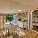 Vila Hotel Camping Eden Glamping poskytuje přístup do Riserva Naturale dei Canneti di Dormelletto a nabízí hostům solárium a jacuzzi. K této plážové vile patří kompletní kuchyně a pokoje vybavené přístrojem na přípravu kávy a čaje, místností na posezení, detektory kouře.